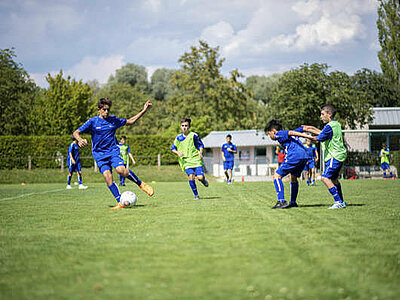 Football training with experienced coaches is held every afternoon for 2 hours at the club FC Ludwighafen’s facilities. The techniques are taught and conveyed using an extremely practically oriented methodology. Whether beginning or advanced players – the training plan includes not only the basics of ball control but also passing, dribbling and, of course, shooting goals. In addition, you’ll receive a complete Carl Duisberg football uniform including jersey, shorts, and socks. That way, everyone can immediately see you belong to a great team!